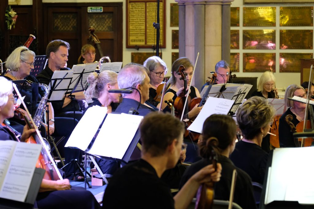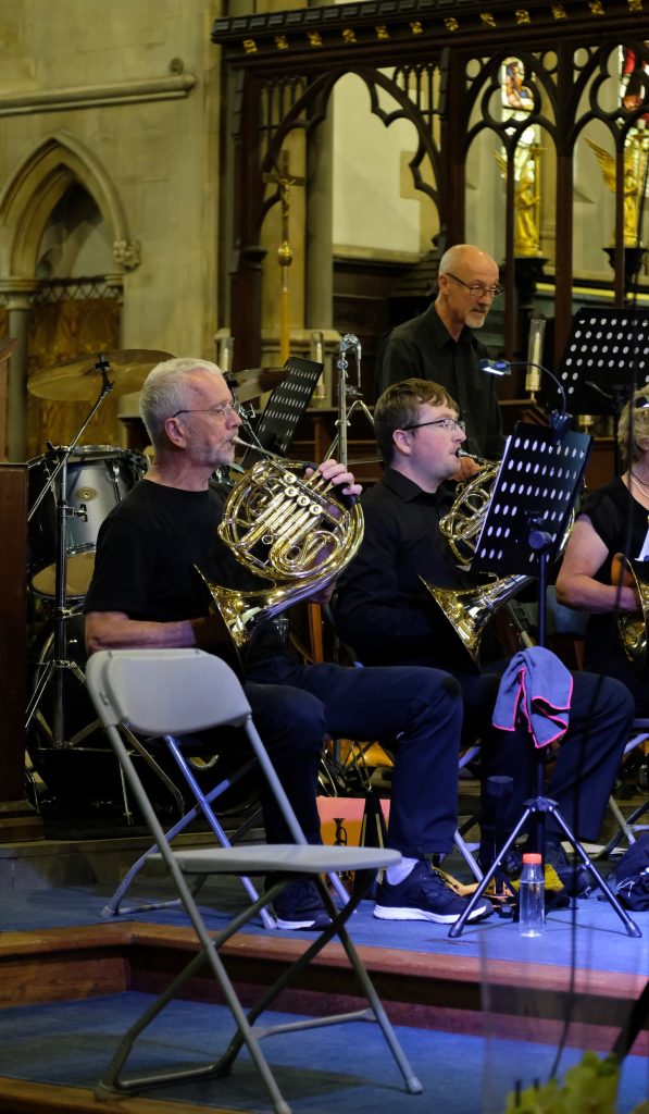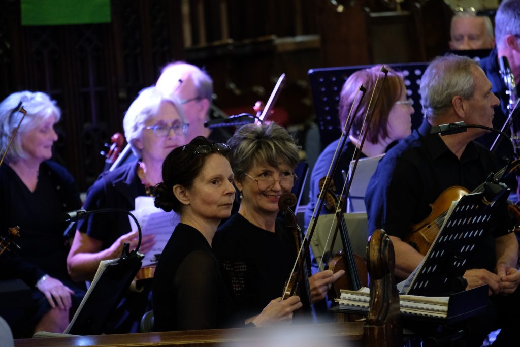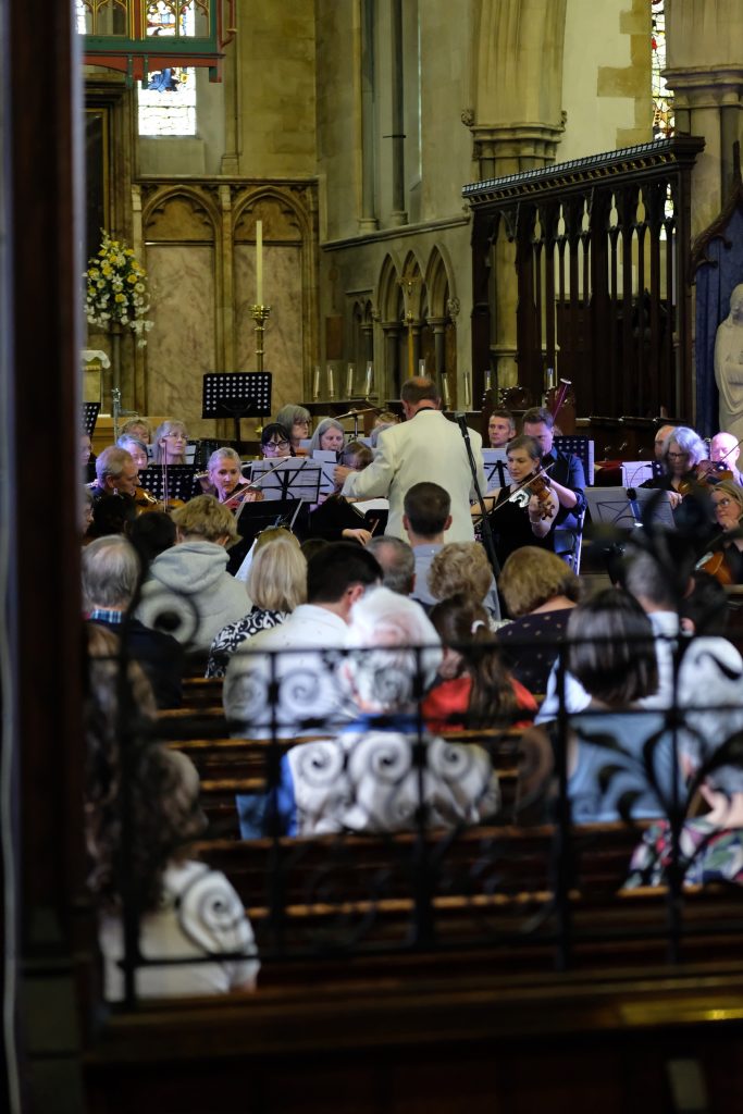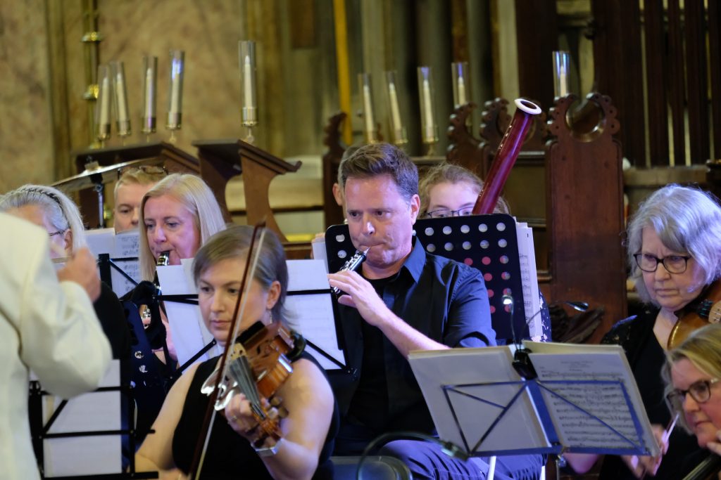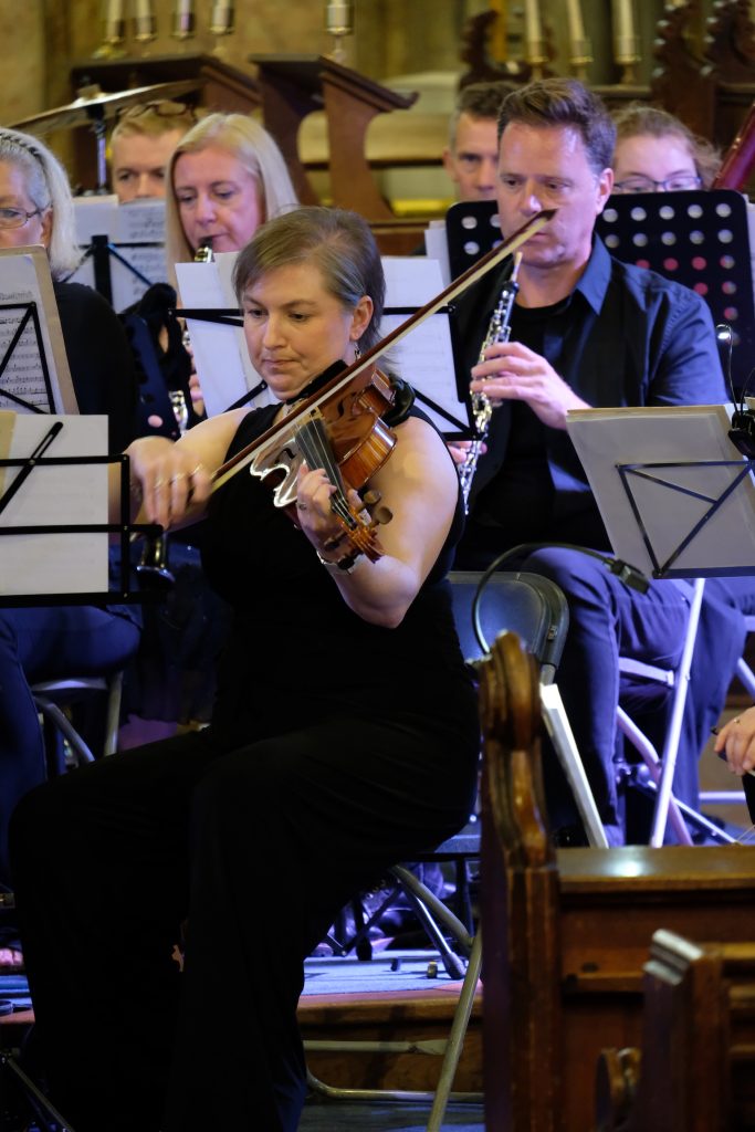 It was wonderful to be back playing for a live audience after more than two years due to covid. St Mary’s Priory Church in Monmouth was packed and the audience throughly enjoyed the programme of patriotic music from all four corners of the British Isles. The programme included Purcell’s English Suite, Vaughan Williams’ English Folk Song Suite, Mathias Serenade for Small Orchestra and Henry Wood’s Fantasia on British Sea Songs. In the Fantasia the orchestra’s pianist was transformed into Britannia and gave a rousing rendition of Rule Britannia complete with helmet and shield.