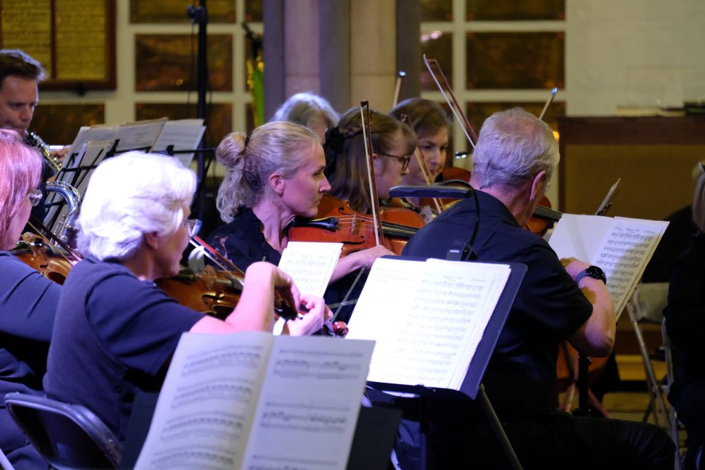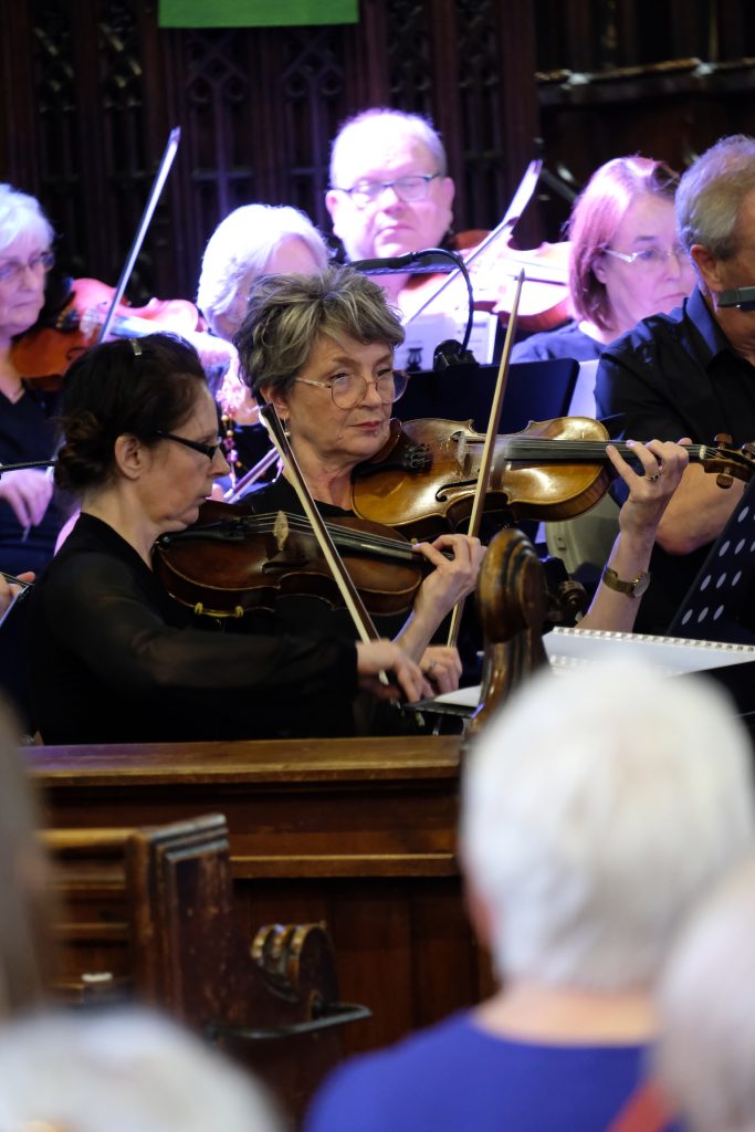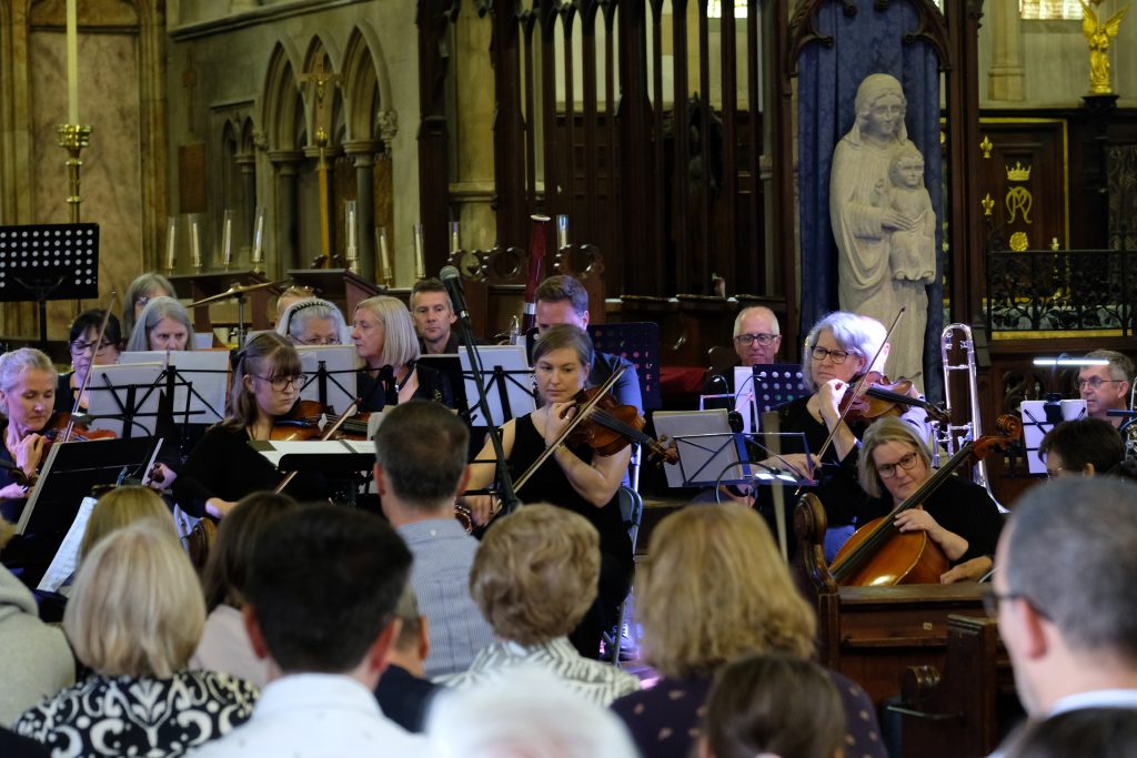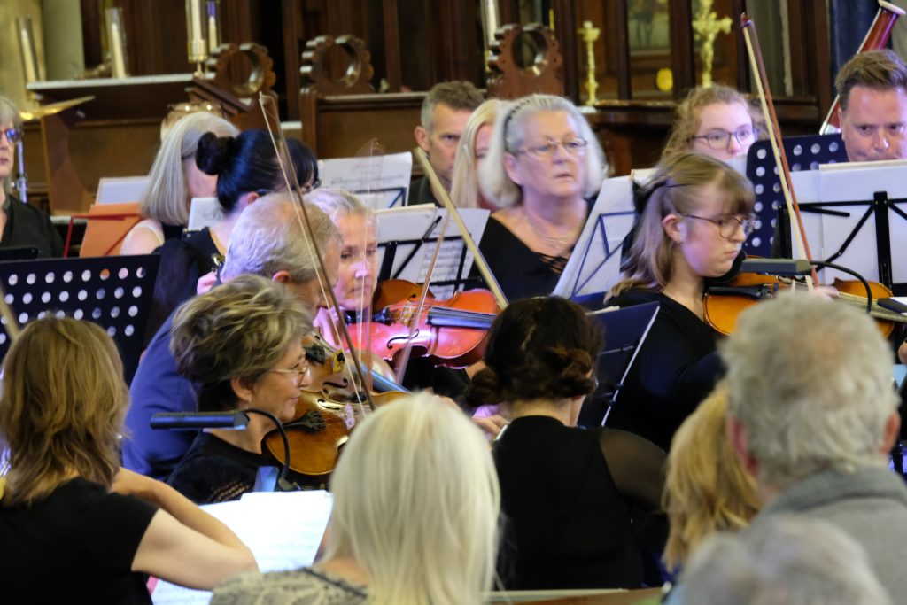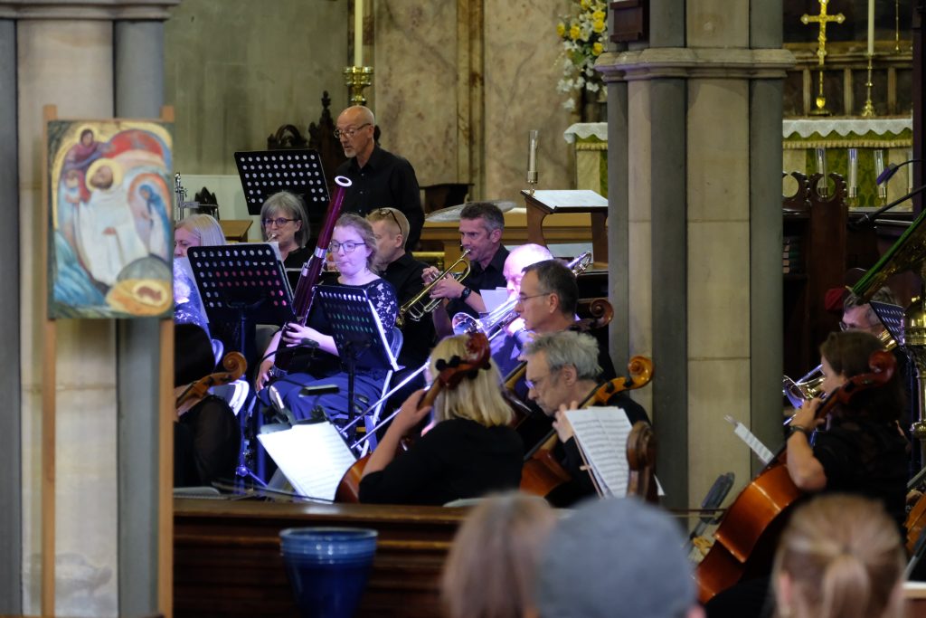 It was wonderful to be back playing for a live audience after more than two years due to covid. St Mary’s Priory Church in Monmouth was packed and the audience throughly enjoyed the programme of patriotic music from all four corners of the British Isles. The programme included Purcell’s English Suite, Vaughan Williams’ English Folk Song Suite, Mathias Serenade for Small Orchestra and Henry Wood’s Fantasia on British Sea Songs. In the Fantasia the orchestra’s pianist was transformed into Britannia and gave a rousing rendition of Rule Britannia complete with helmet and shield.