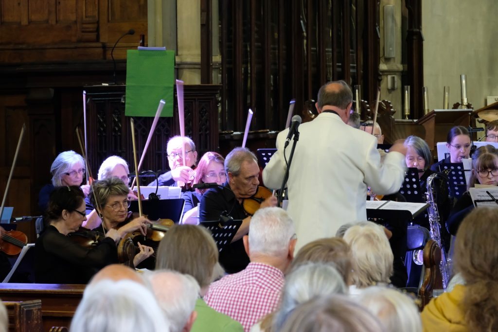 Monmouth Concert Orchestra played to a packed church on Sunday 15 June and delighted the audience with a programme of animal-themed music. The orchestra gave a resounding performance of Symphony No.3 Organ – Finale by Saint-Saëns accompanied by guest organist Philip Norman. Also by Saint- Saëns, The Swan was performed by lead cellist Rosemary Chatterton and other highlights included Die Fledermaus Polka by Johann Strauss II and Under the Double Eagle by Josef Wagner.